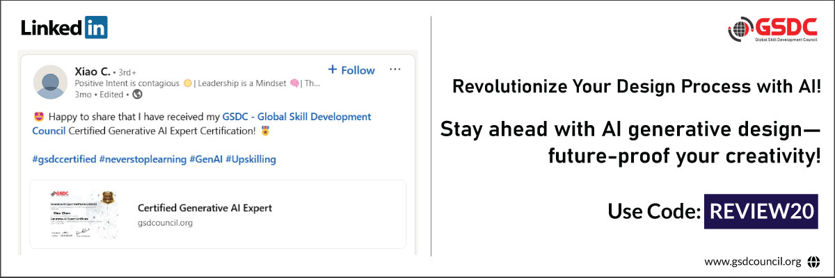Consider programs like GSDC’s Generative AI Professional Certification to ensure your team has the necessary expertise to fully leverage AI tools and maximize the creative potential of generative design.