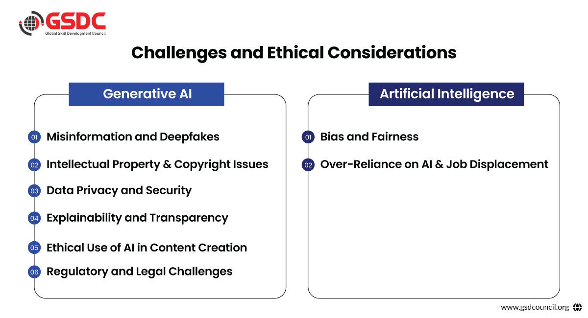 Generative AI has the power to fabricate incredibly real yet false-stuff material, leading to misinformation and manipulation. Deepfakes pose a threat in the field of politics, media, and personal identity and other issues involve trust and authenticity.