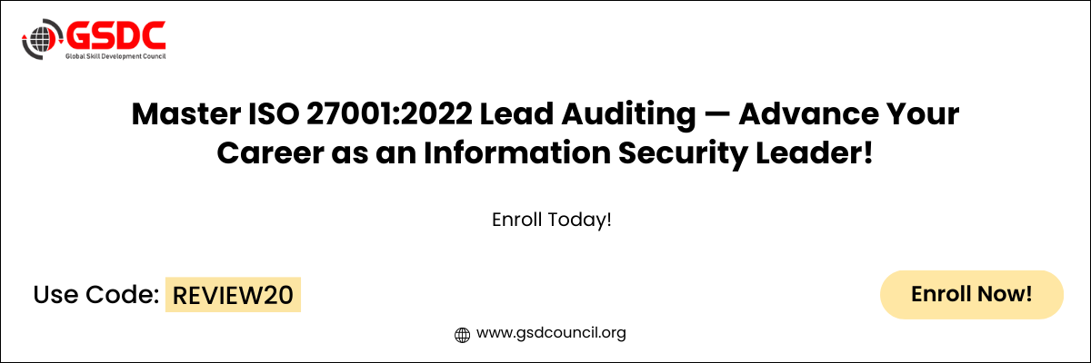 GSDC delivers industry-aligned certification exams and practical resources the ISO 27001:2022 Lead Auditor Certification validates the functional skills, roles auditors need to succeed in information security auditing.